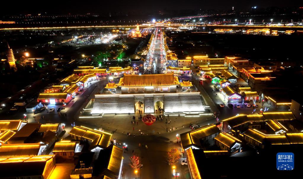 這是1月24日晚拍攝的河北省石家莊市正定古城夜景(無(wú)人機照片)。