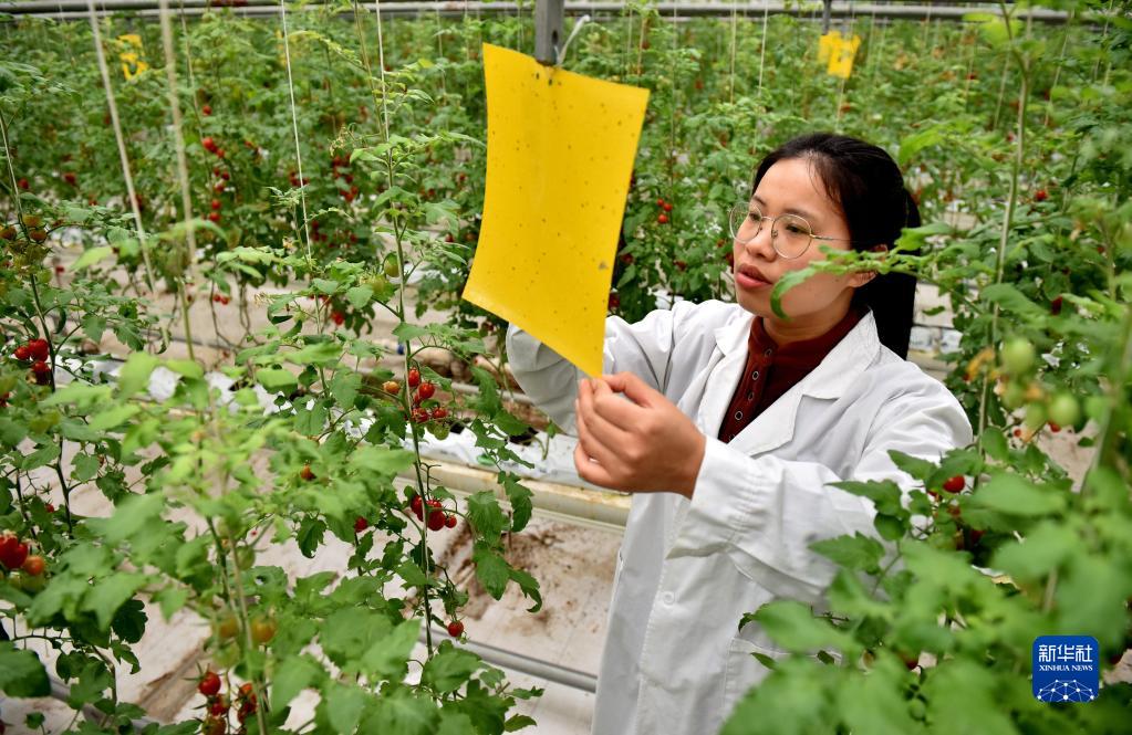 1月26日,武瑞娜在查看粘蟲(chóng)板。