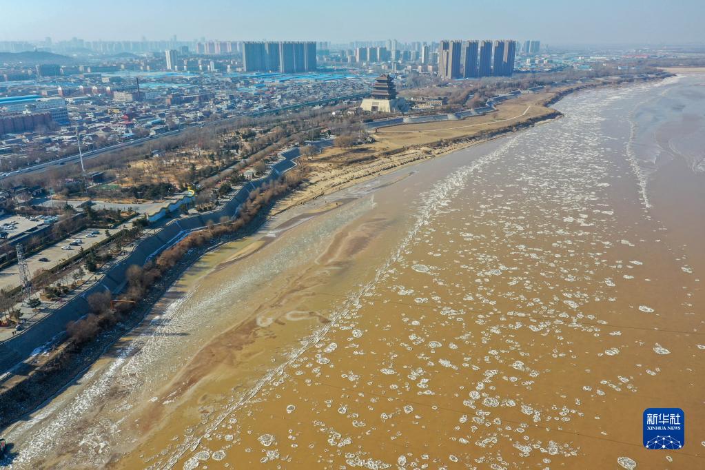 這是1月27日在黃河濟南濼口段拍攝的淌凌(無(wú)人機照片)。