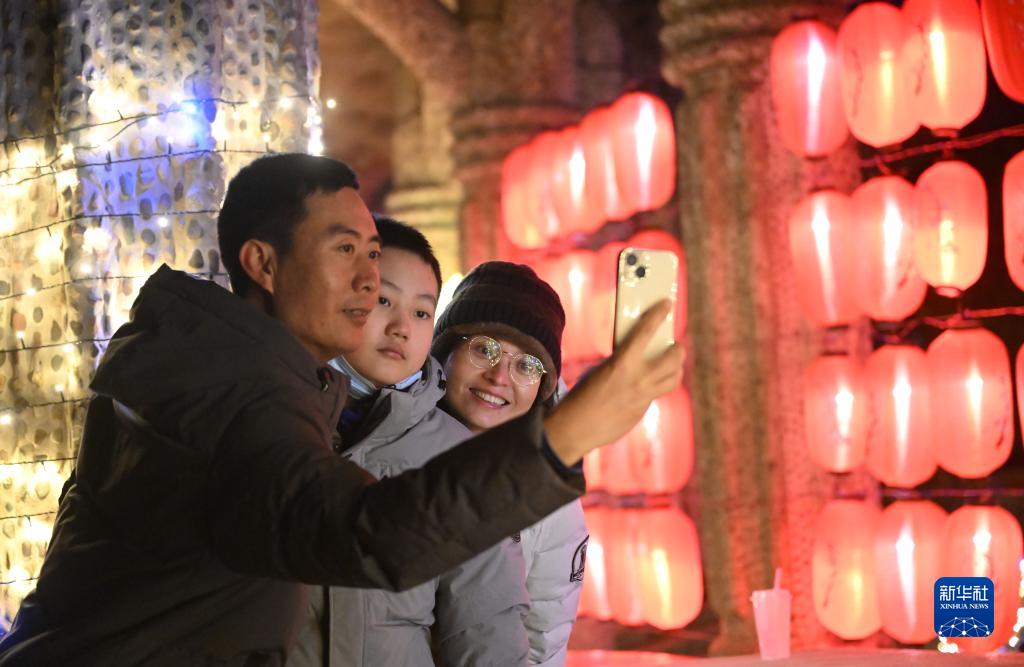 游客在中華石園新春民俗燈會(huì )拍照留念(1月26日攝)。