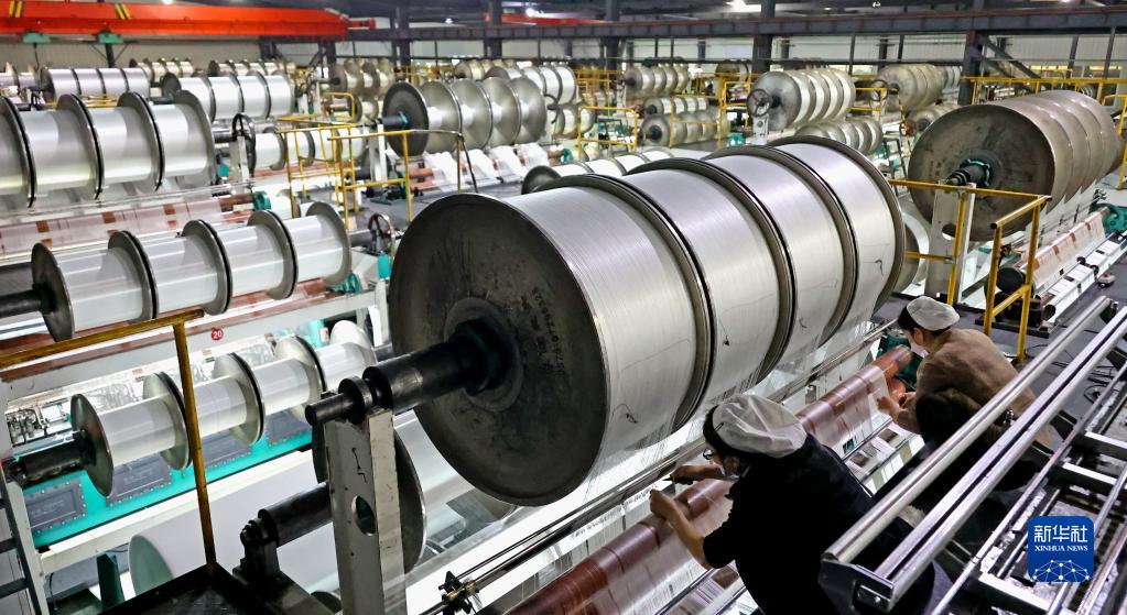 1月27日,在江蘇連云港高新區海州工業(yè)園,工人在毛毯生產(chǎn)線(xiàn)上忙碌。
