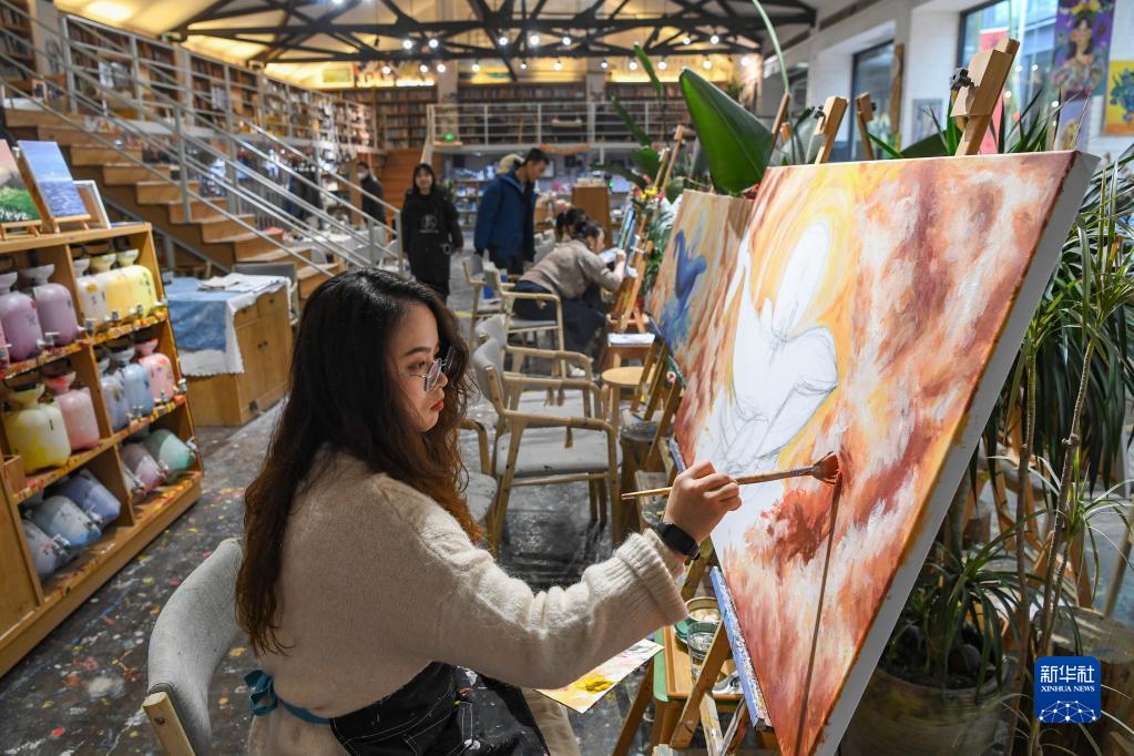1月27日,游客在重慶北倉文創(chuàng )街區體驗繪畫(huà)。
