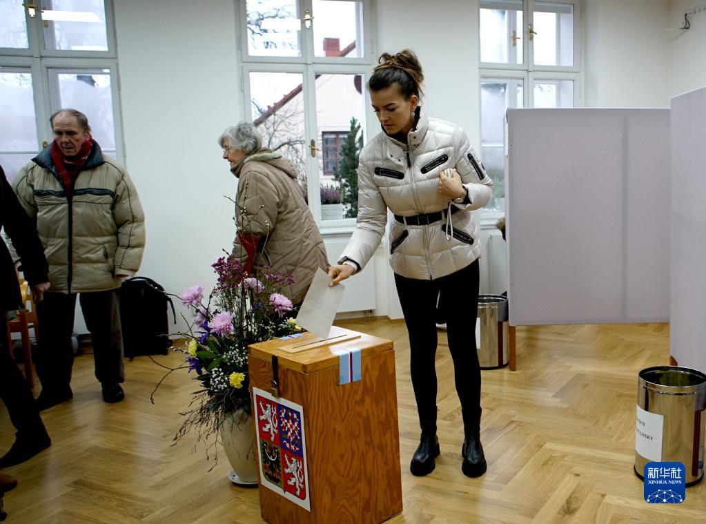 1月27日,選民在捷克首都布拉格附近的一處投票點(diǎn)投票。