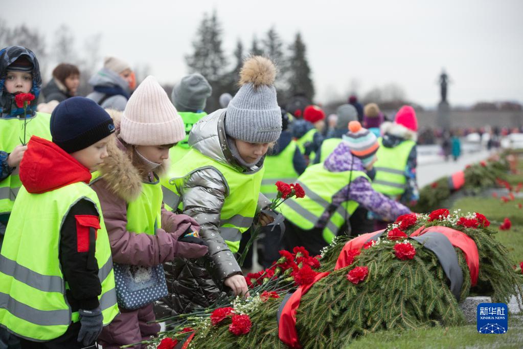 1月27日,孩子們在俄羅斯圣彼得堡舉行的紀念活動(dòng)上獻花。