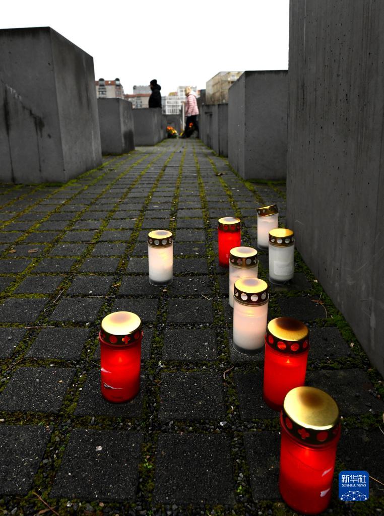 這是1月27日在德國柏林歐洲被害猶太人紀念碑拍攝的蠟燭。