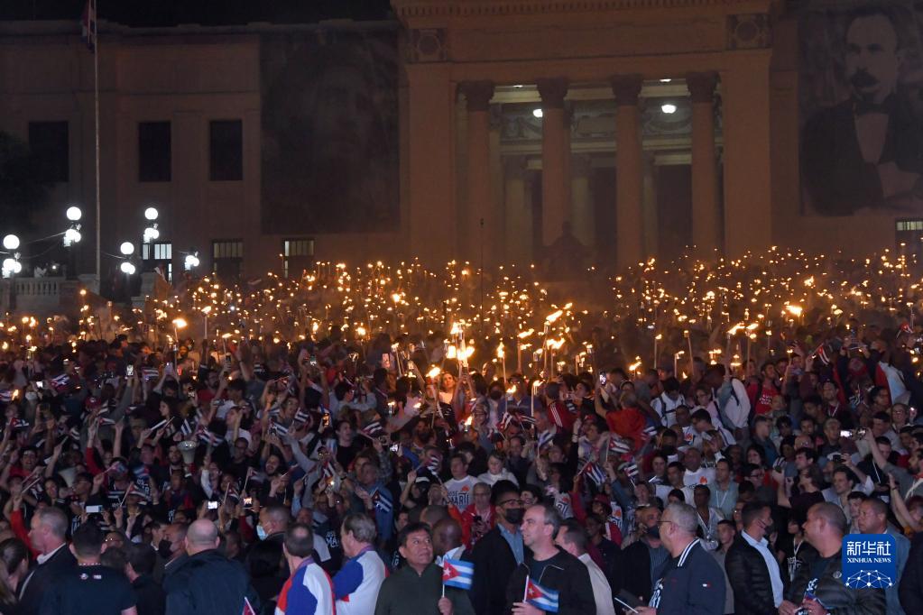 1月27日晚,古巴民眾在首都哈瓦那參加紀念何塞·馬蒂誕辰170周年活動(dòng)。