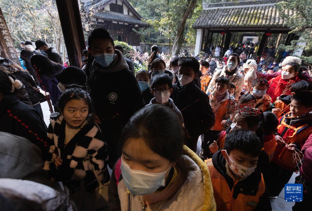 1月28日,在四川成都杜甫草堂工部祠,人們手捧紅梅祭拜杜甫。