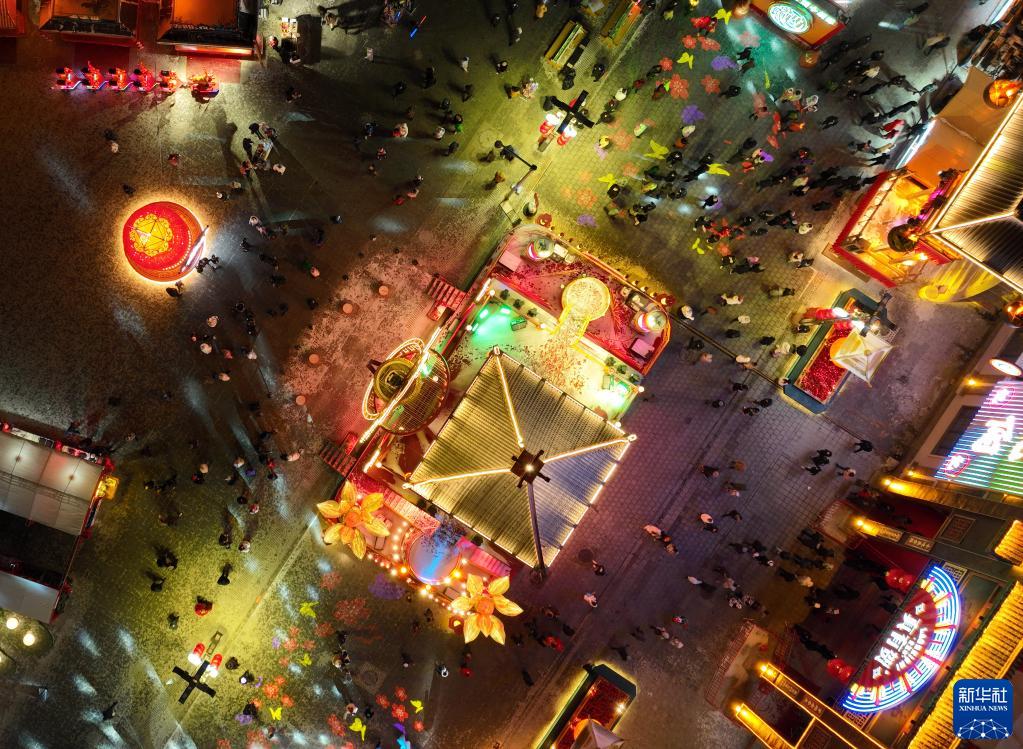1月23日,市民在沈陽(yáng)新春皇寺廟會(huì )游玩(無(wú)人機照片)。