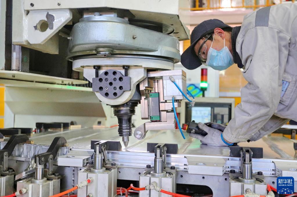 1月28日,工人在位于河北省秦皇島市海港區海港鎮的戴卡優(yōu)艾希杰渤鋁汽車(chē)零部件有限公司的汽車(chē)零部件加工生產(chǎn)線(xiàn)作業(yè)。