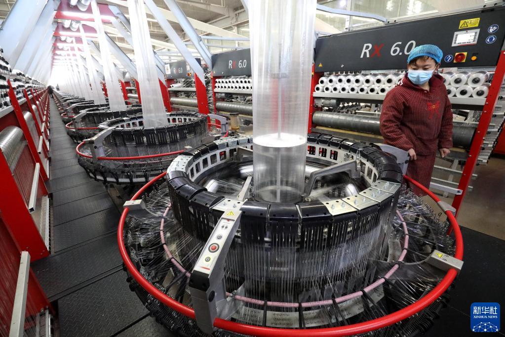 1月28日,工人在河北行唐經(jīng)濟開(kāi)發(fā)區一家包裝袋生產(chǎn)企業(yè)忙碌。