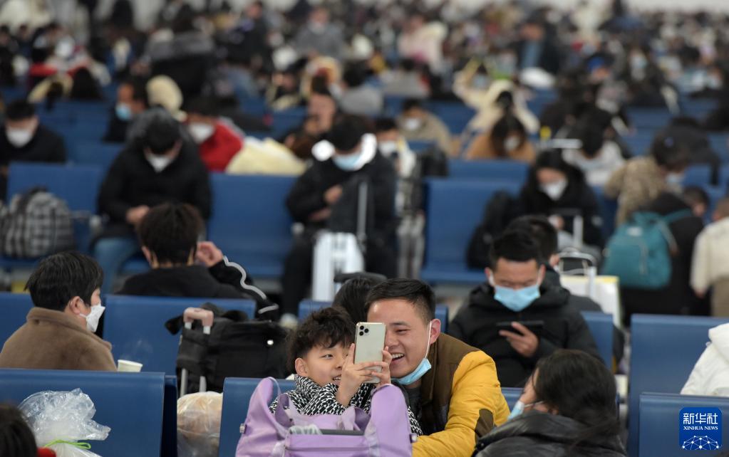 1月27日,旅客在安徽阜陽(yáng)西站候車(chē)室內候車(chē)。
