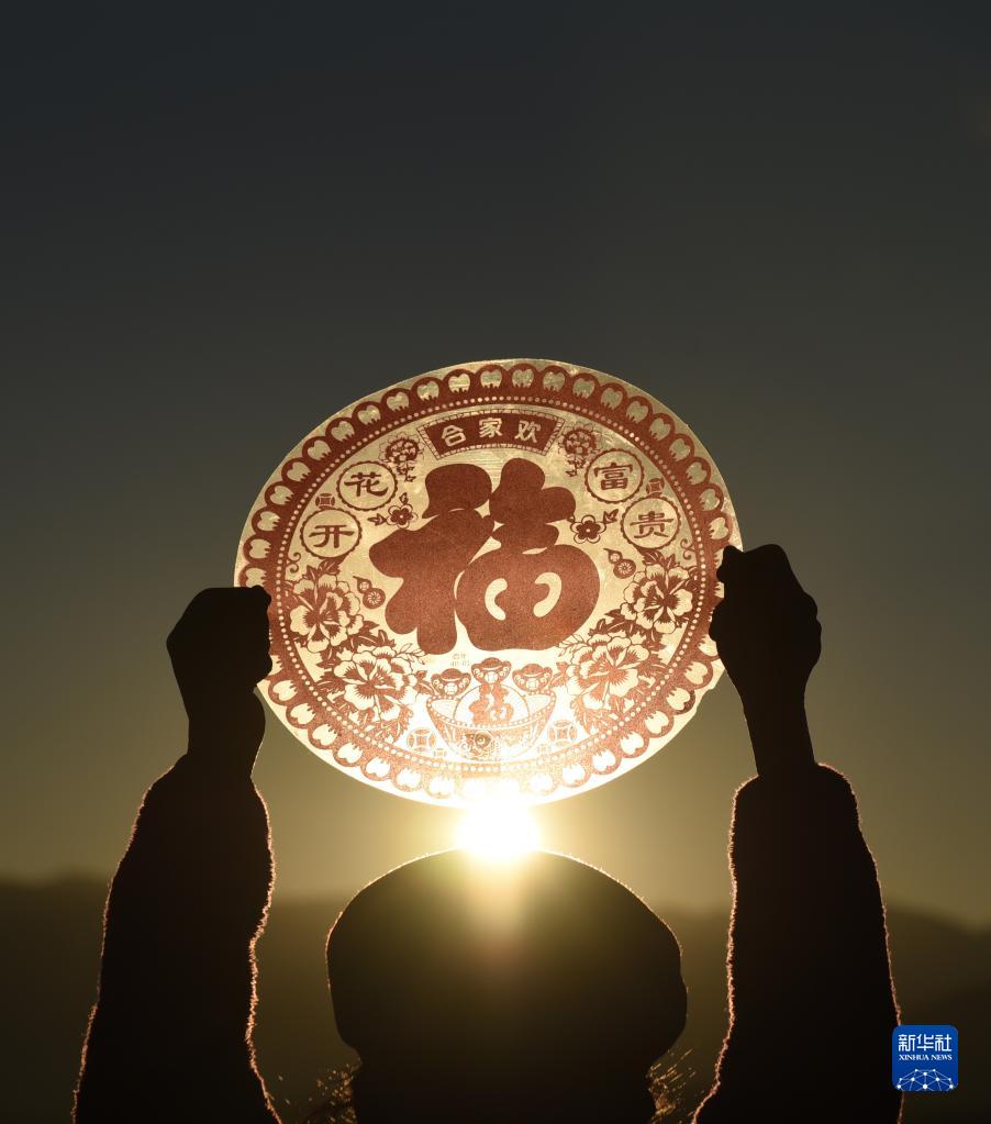 1月22日,在云南省大理州劍川縣馬登鎮文屏村,村民舉起福字,迎接新年第一縷陽(yáng)光,寓意“福迎新春”。