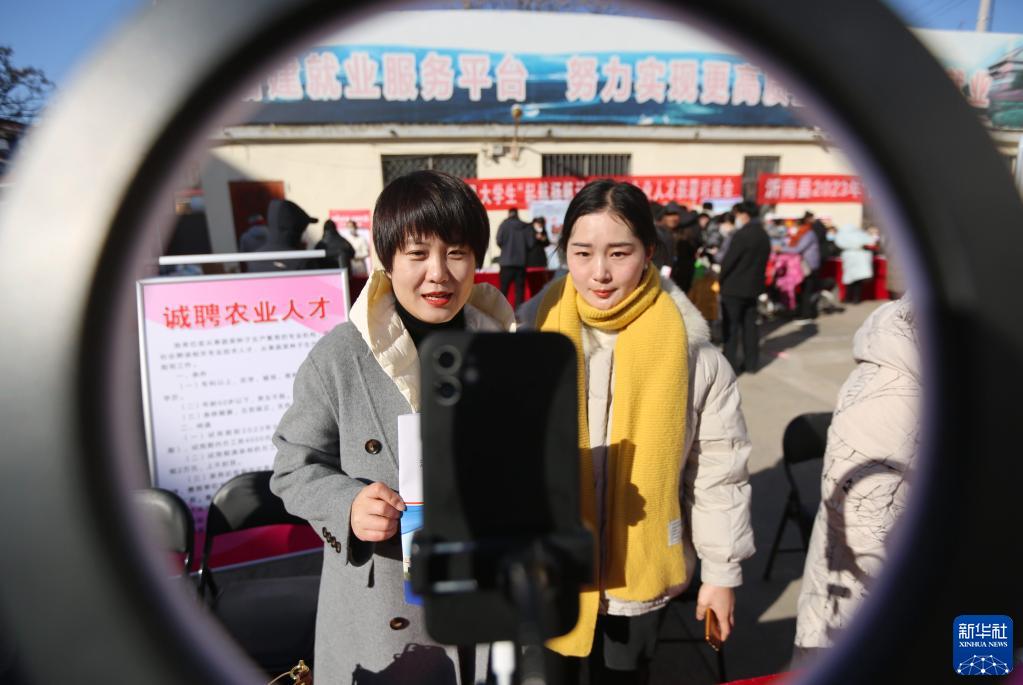 1月29日,在山東省臨沂市沂南縣舉行的2023年“春風(fēng)行動(dòng)”暨“就業(yè)援助月”現場(chǎng)招聘會(huì )上,一家用人企業(yè)通過(guò)線(xiàn)上、線(xiàn)下相結合的方式介紹招聘崗位信息。