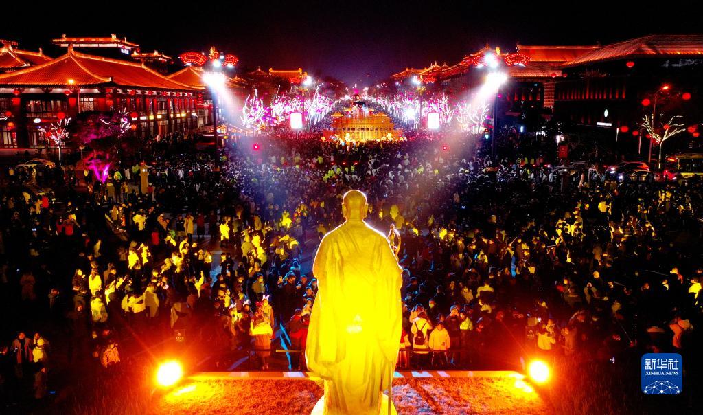 這是1月28日在西安大雁塔南廣場(chǎng)拍攝的景象(無(wú)人機照片)。