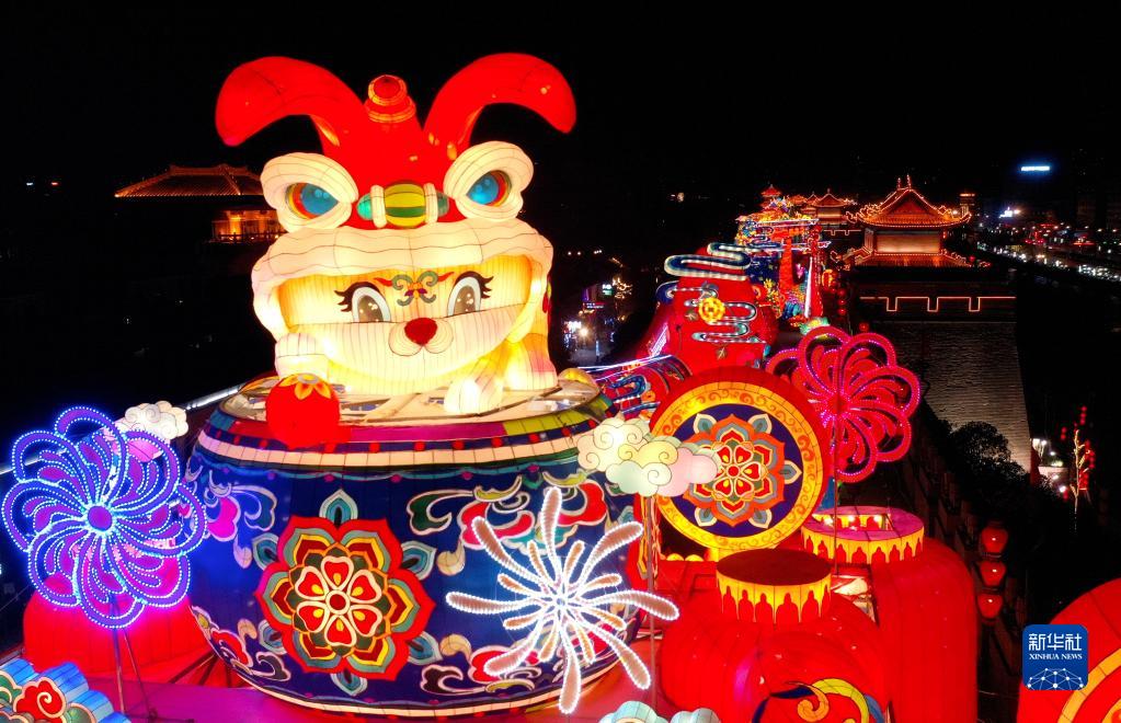 這是1月26日在西安城墻拍攝的花燈(無(wú)人機照片)。