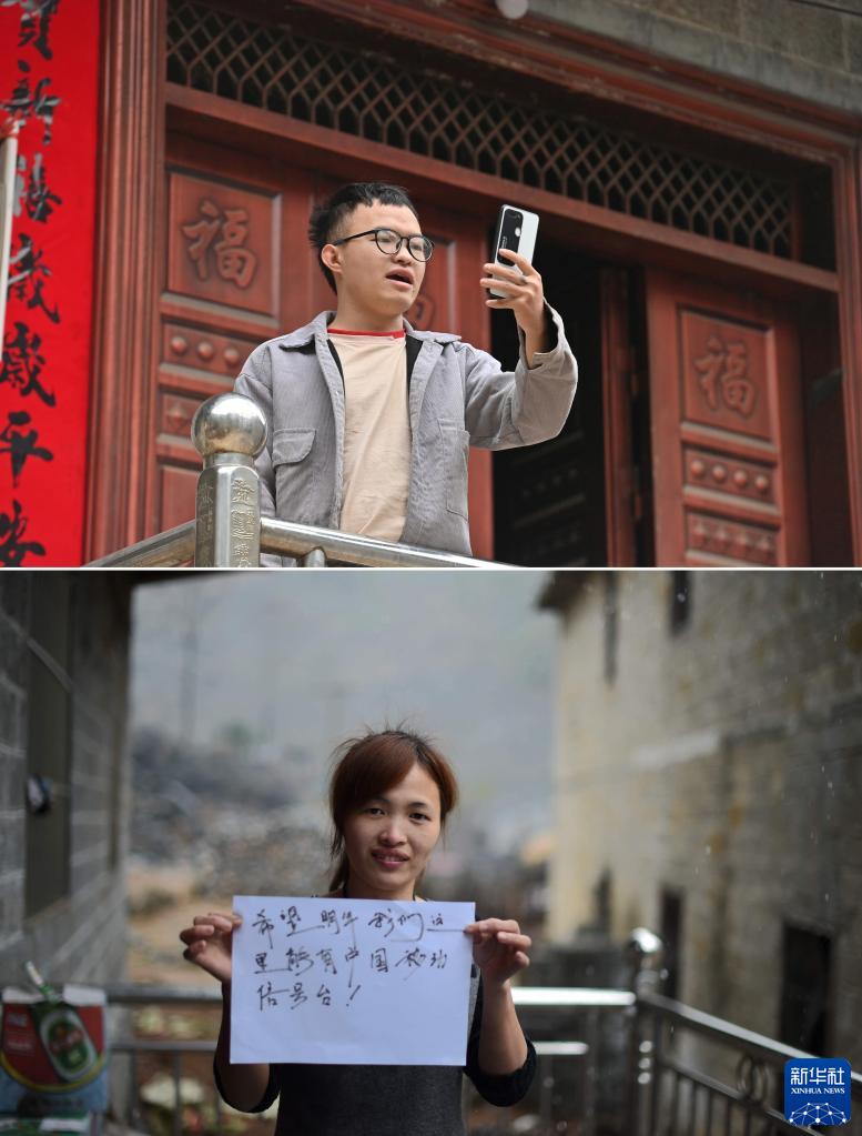 拼版照片:上圖為2023年1月26日,弄勇村弄頂屯村民藍志龍和遠在湖南的姐姐藍春梅進(jìn)行視頻通話(huà);下圖為2015年2月14日,藍春梅寫(xiě)下新年愿望——希望手機信號強一點(diǎn)。