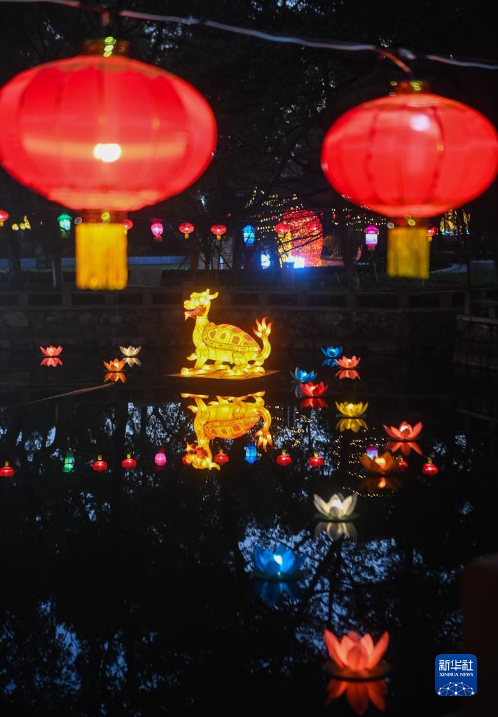 1月29日,在嘉興市秀洲區新塍古鎮小蓬萊公園內,“鰲山燈會(huì )”的彩燈正式點(diǎn)亮。
