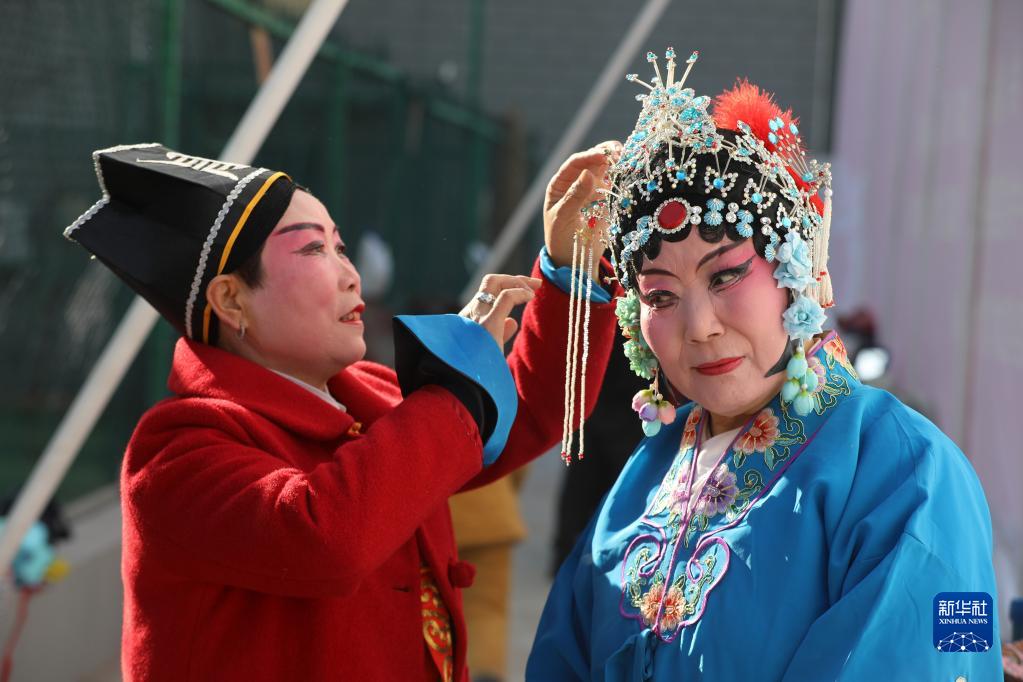 1月29日,在溫縣文化廣場(chǎng),演員在演出前化裝。