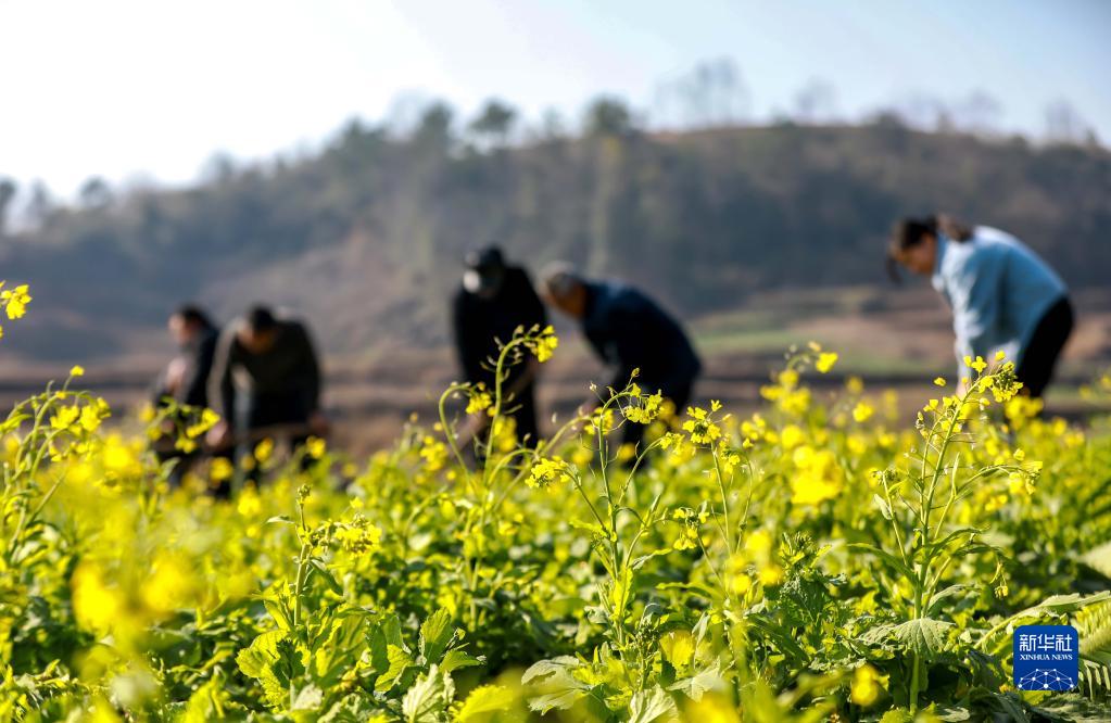 1月30日,村民在貴州省黔西市蓮城街道老鴰河社區地里勞作。