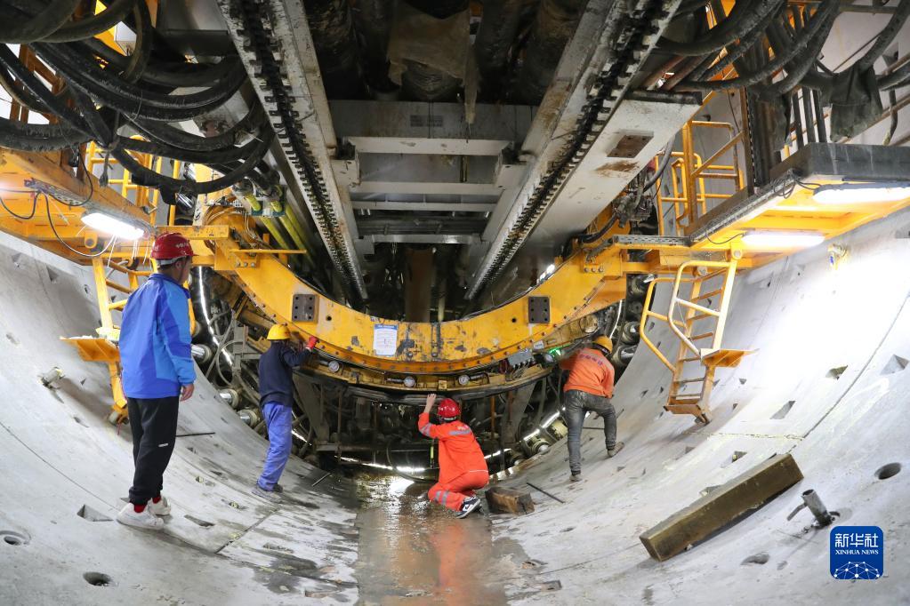 在福州地鐵濱??炀€(xiàn)南公園站至三叉街站掘進(jìn)區間,中鐵八局建設者檢查盾構機(1月29日攝)。目前福州地鐵濱??炀€(xiàn)全線(xiàn)車(chē)站已動(dòng)工,10個(gè)車(chē)站主體結構已封頂,19臺盾構機正在掘進(jìn)。