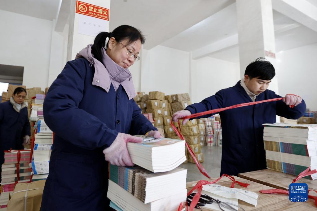 1月29日,在江西省吉安市峽江縣新華書(shū)店,工作人員在分類(lèi)整理新學(xué)期教材。