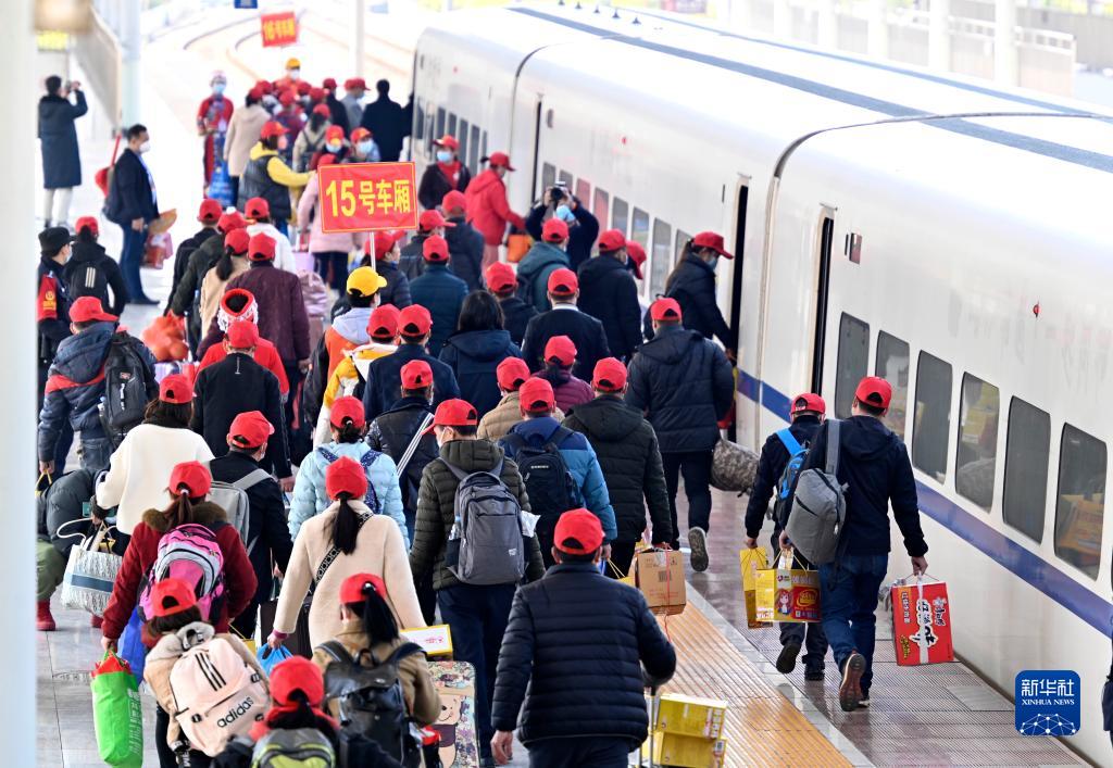 當日,2023年廣西柳州市首趟“點(diǎn)對點(diǎn)”送工服務(wù)專(zhuān)列D3755次列車(chē)從柳州火車(chē)站發(fā)車(chē),500多名來(lái)自柳州市各縣區的務(wù)工人員乘坐動(dòng)車(chē)前往廣東返崗復工。