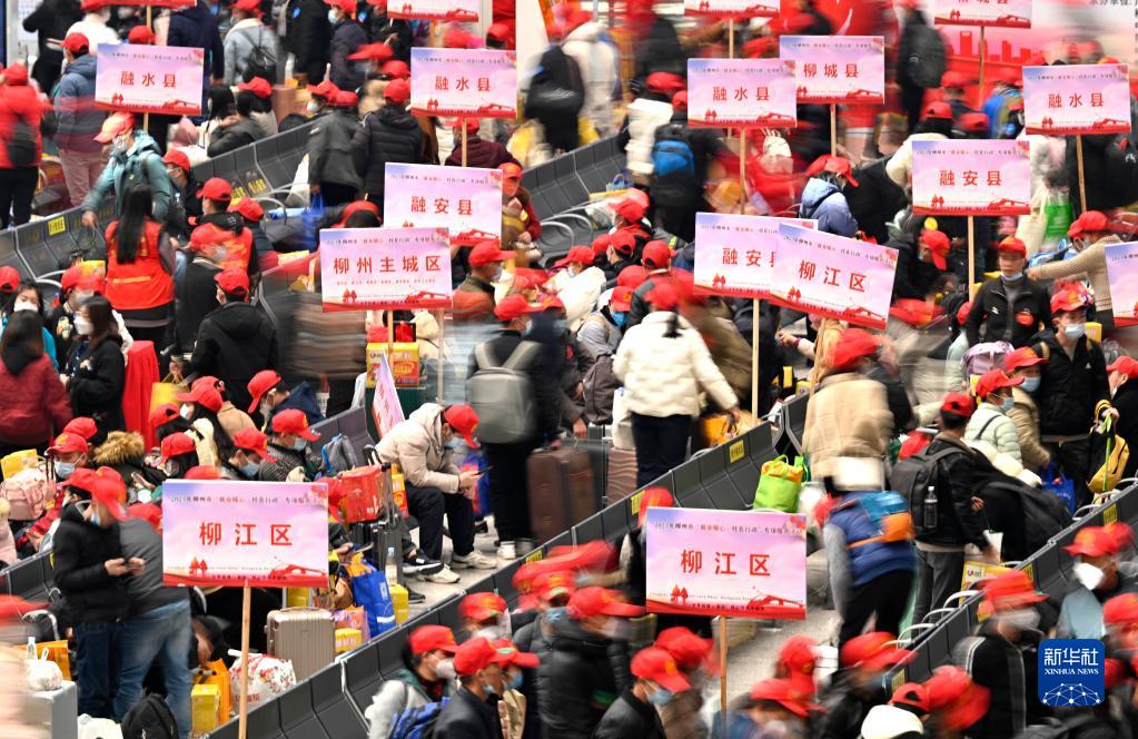 當日,2023年廣西柳州市首趟“點(diǎn)對點(diǎn)”送工服務(wù)專(zhuān)列D3755次列車(chē)從柳州火車(chē)站發(fā)車(chē),500多名來(lái)自柳州市各縣區的務(wù)工人員乘坐動(dòng)車(chē)前往廣東返崗復工。