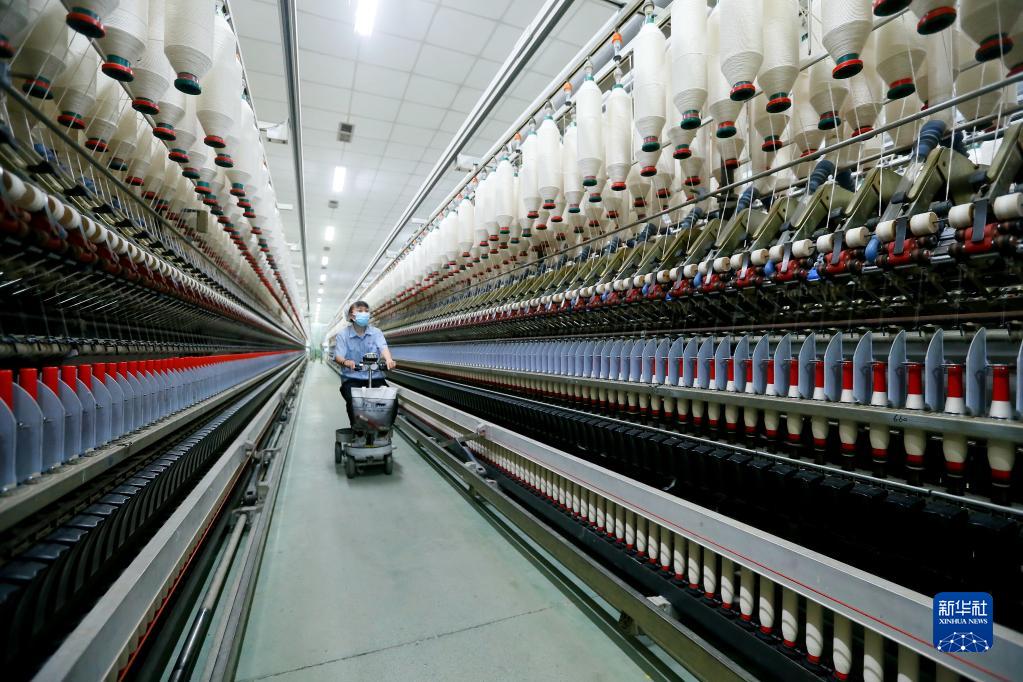 1月30日,山東省青島即發(fā)盛寶紡織有限公司的紡織工人在智能化生產(chǎn)線(xiàn)上生產(chǎn)棉紗產(chǎn)品。