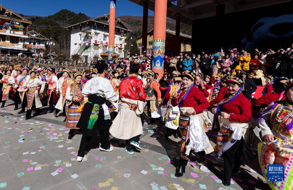 1月30日,身著(zhù)盛裝的藏族青年男女跳著(zhù)歡快的舞蹈。