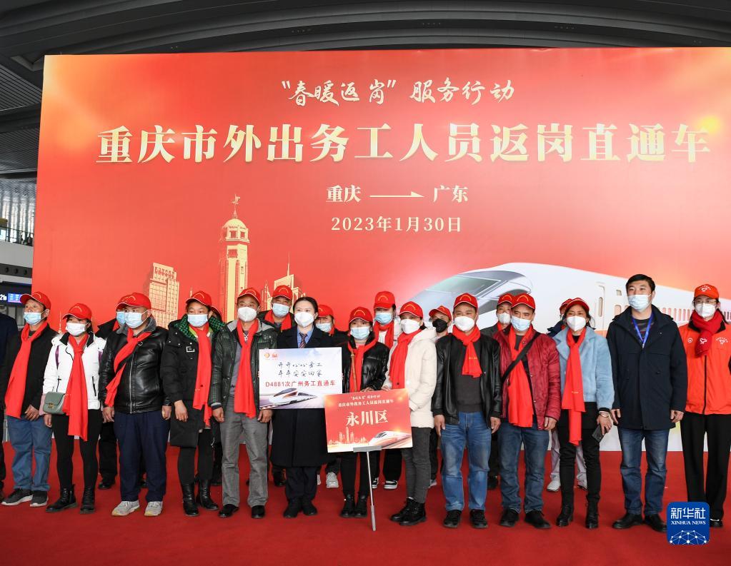 當日,由重慶西開(kāi)往廣州南的D4881次務(wù)工專(zhuān)列順利開(kāi)出,來(lái)自川渝兩地的約890名務(wù)工人員踏上返崗之路,這是2023年從重慶開(kāi)行的首趟務(wù)工定制專(zhuān)列。