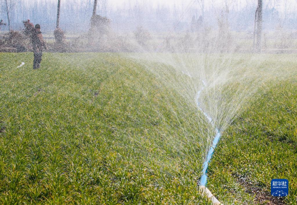 1月30日,在河南省南陽(yáng)市宛城區黃臺崗鎮奶母莊村田間,農民澆灌冬小麥。