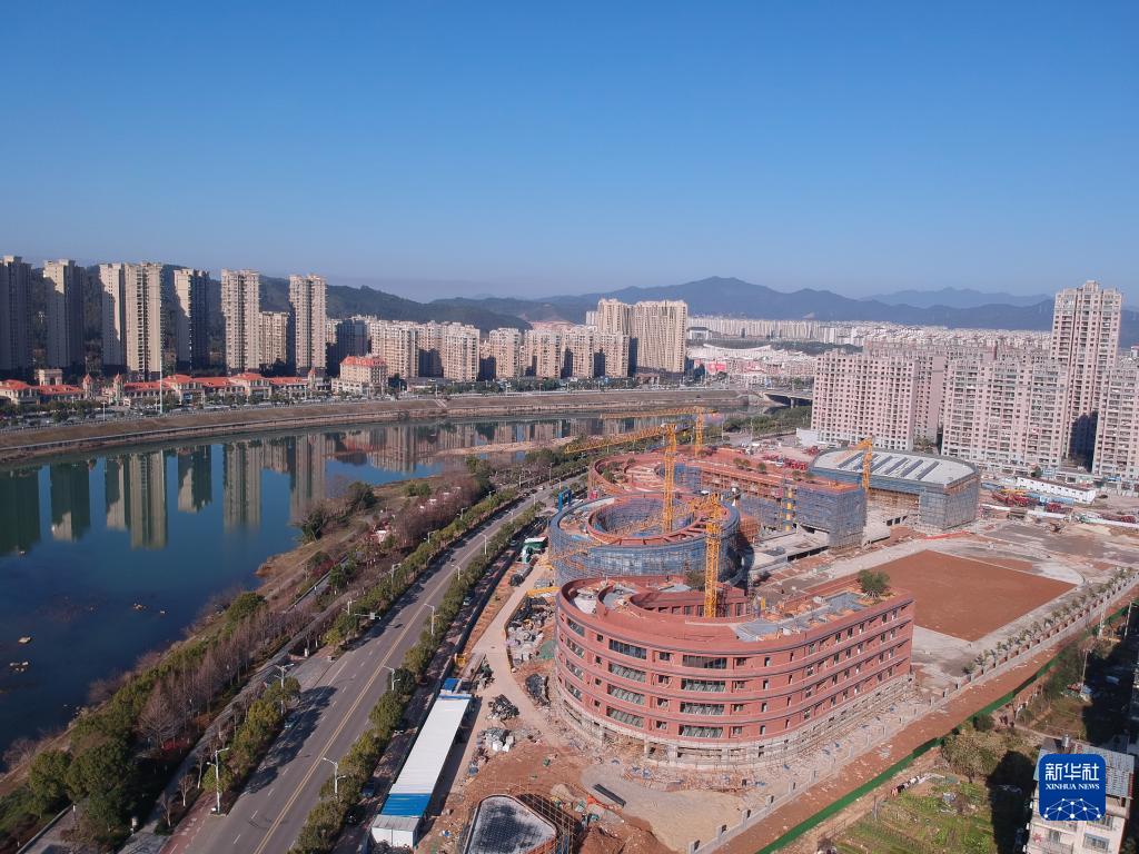 1月30日拍攝的福建省南平市第三實(shí)驗學(xué)校建設項目施工現場(chǎng)(無(wú)人機照片)。