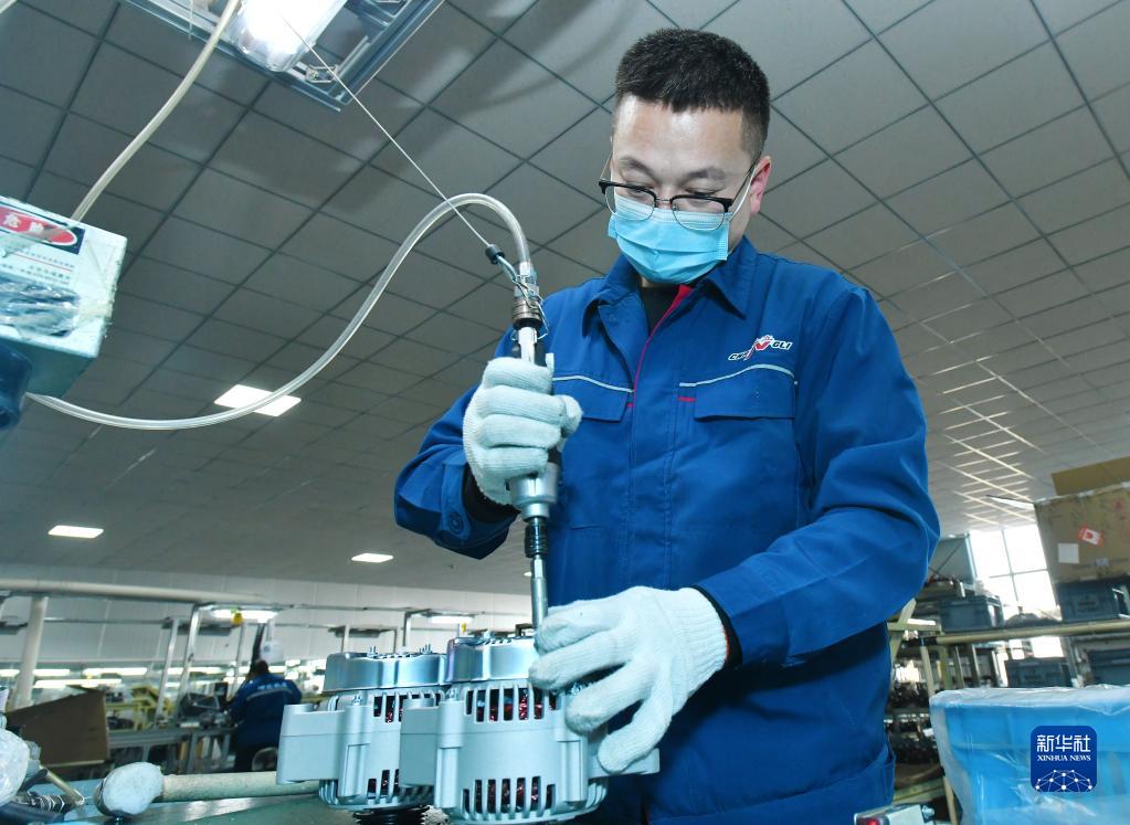 1月30日,工人在河間市一家再制造企業(yè)車(chē)間生產(chǎn)線(xiàn)上工作。