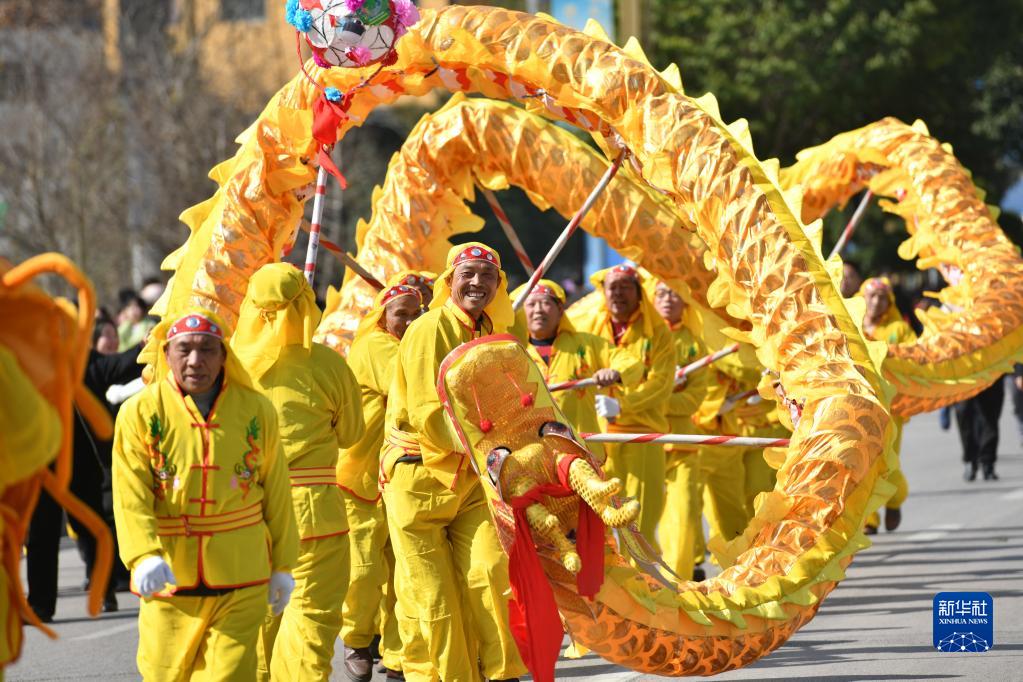 1月30日,在貴州省黃平縣新州鎮,舞龍隊在表演舞龍。