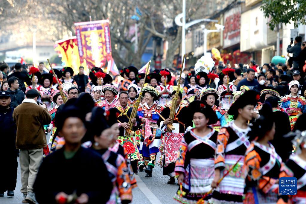 新春走基層|貴州龍里:傳統民俗“踩街”鬧新春