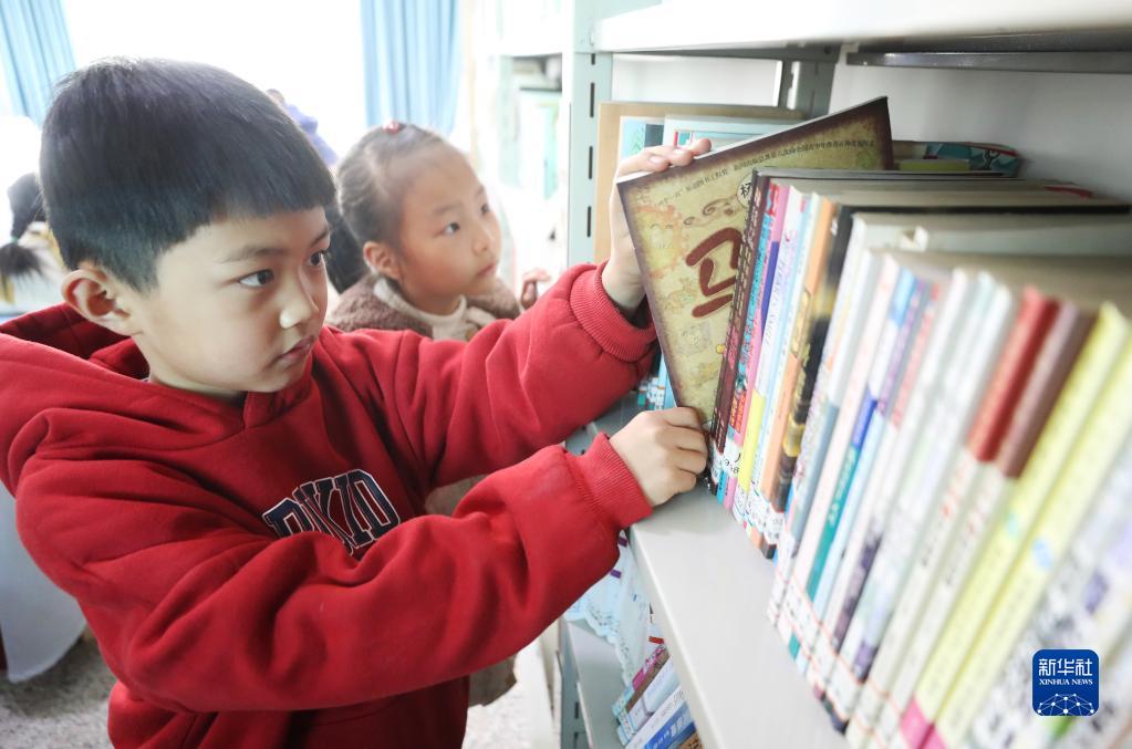 1月30日,在衡陽(yáng)市衡山縣永和鄉松坳村,孩子們在村農家書(shū)屋看書(shū)。