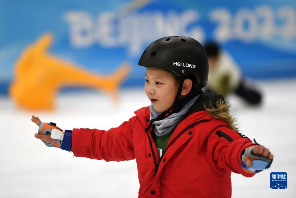 2023年1月22日,小朋友在國家速滑館滑冰。