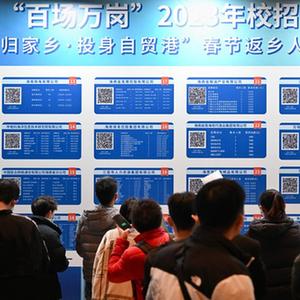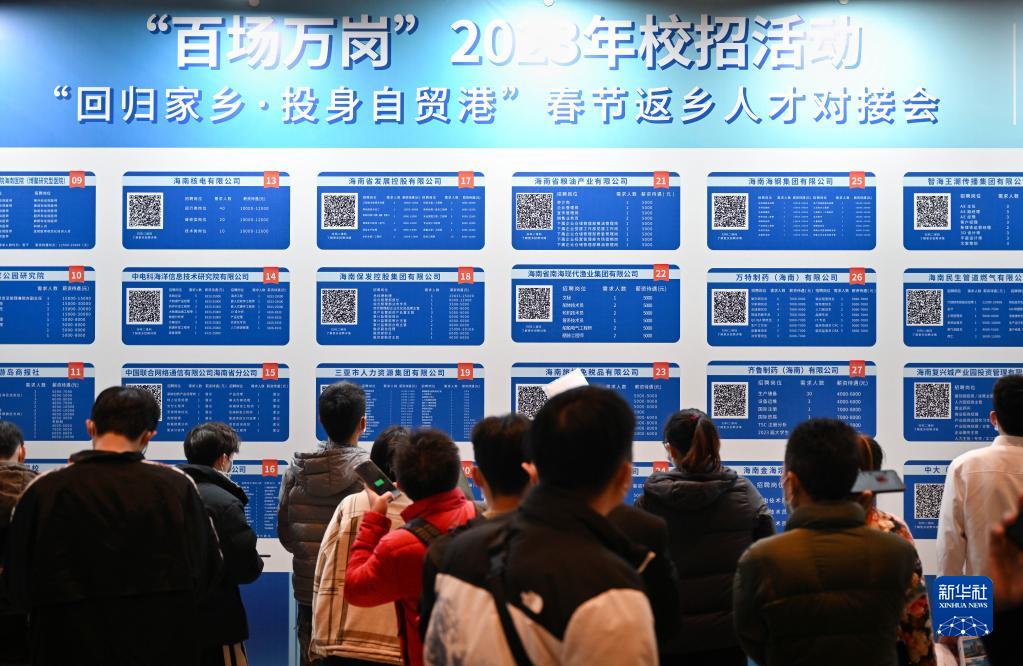 1月31日,求職者在查看招聘信息。當日,中共海南省委、海南省人民政府在??谑信e辦“回歸家鄉·投身自貿港”春節返鄉人才對接會(huì )。據了解,本場(chǎng)招聘會(huì )有245家用人單位提供了5823個(gè)崗位。
