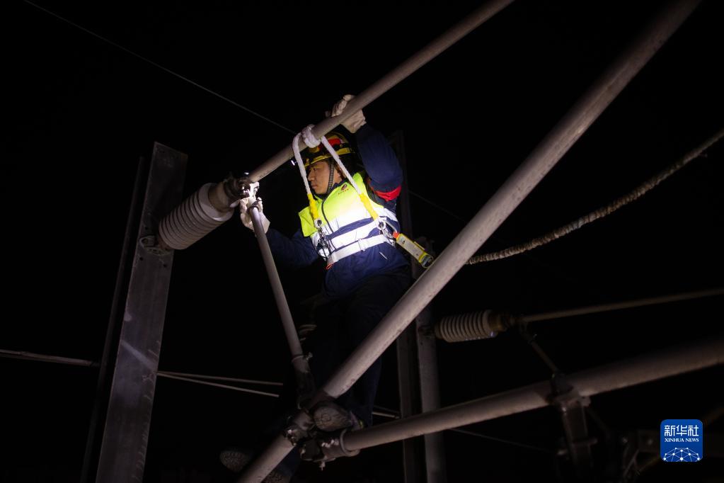2月1日,接觸網(wǎng)檢修工人檢修接觸網(wǎng)設備。