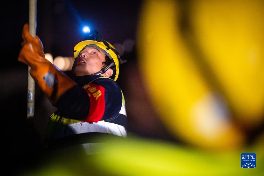 鐵路接觸網(wǎng)供電設備是否正常運轉,關(guān)系著(zhù)每趟列車(chē)的安全運行。春運期間,中國鐵路武漢局集團有限公司武漢供電段高鐵接觸網(wǎng)檢修工人利用0點(diǎn)到6點(diǎn)的“天窗點(diǎn)”,頭戴安全帽、身穿反光服,對京廣高鐵武漢段的接觸網(wǎng)進(jìn)行檢修、維護,為高鐵供電保駕護航。