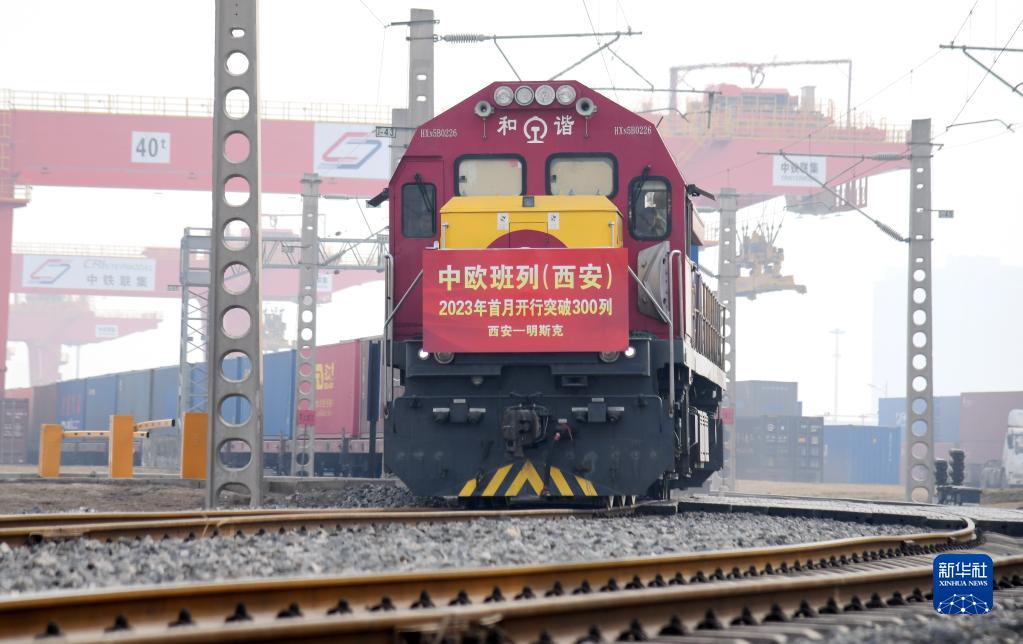 當日,滿(mǎn)載日用百貨的X8151次中歐班列從西安國際港站駛出,開(kāi)往白俄羅斯首都明斯克。2023年1月,陜西中歐班列開(kāi)行突破300列,達到346列,創(chuàng )歷史同期最好成績(jì),取得新年開(kāi)門(mén)紅。