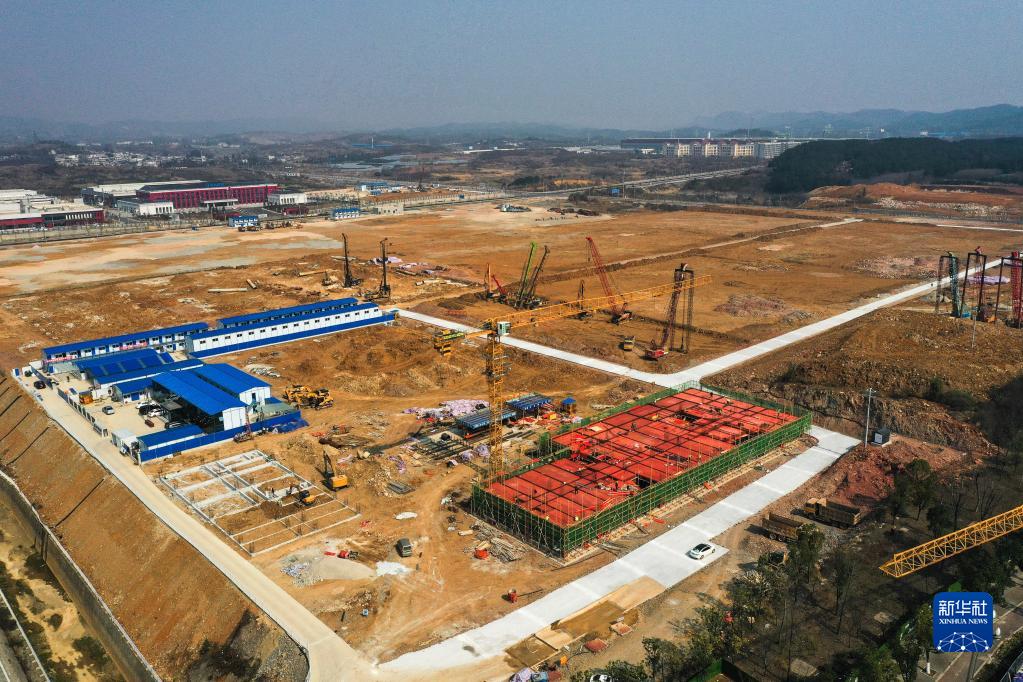 這是2月1日拍攝的貴安新區航空航天產(chǎn)業(yè)孵化基地項目施工現場(chǎng)(無(wú)人機照片)。