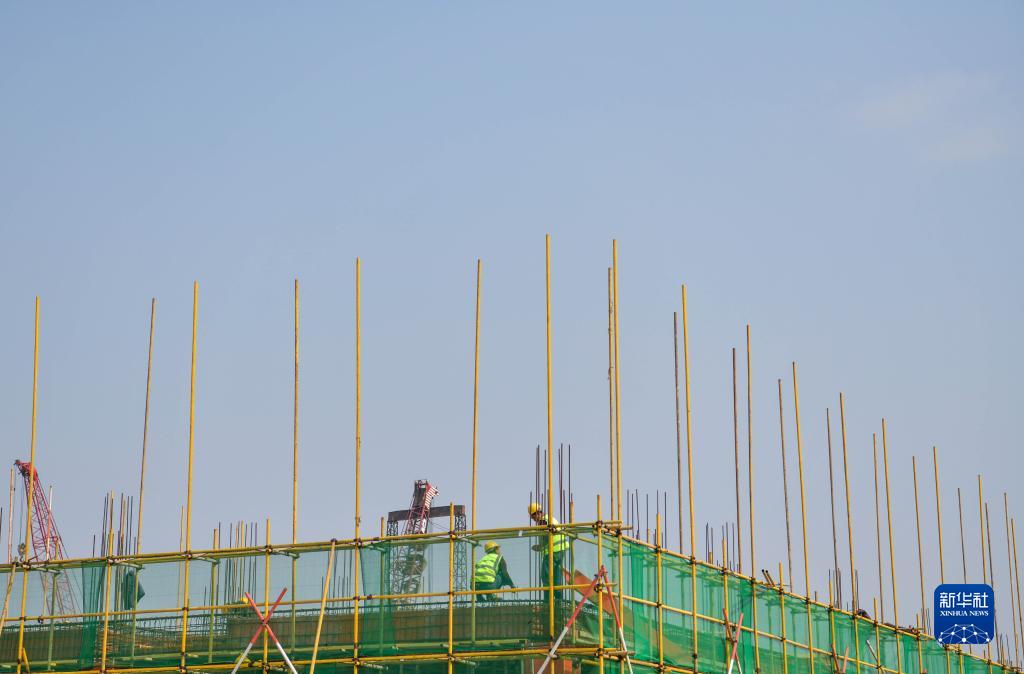 2月1日,工人在貴安新區航空航天產(chǎn)業(yè)孵化基地項目現場(chǎng)施工。