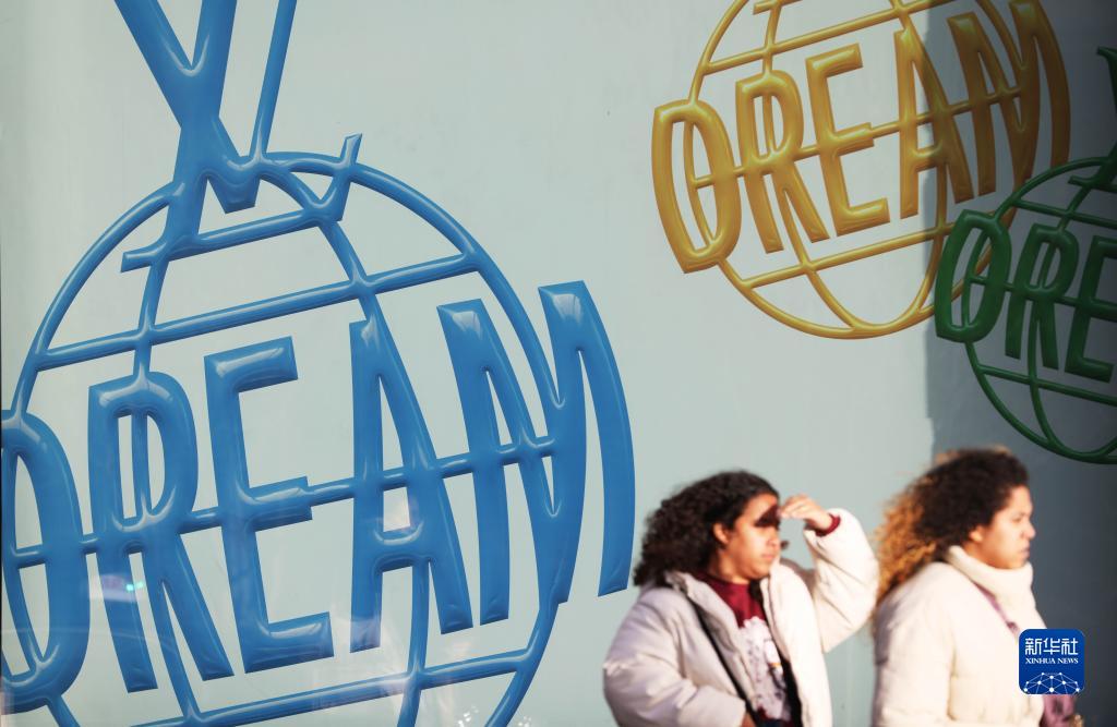 2月1日,人們走過(guò)法國巴黎街頭的一處廣告。