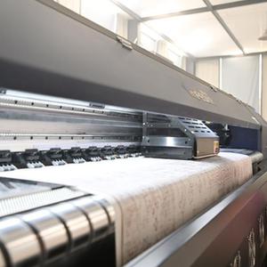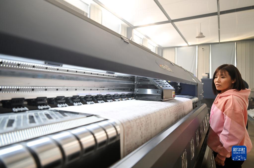 在天津市武清區崔黃口鎮凱利地毯有限公司,工人在查看地毯印花機的運行情況(2月1日攝)。