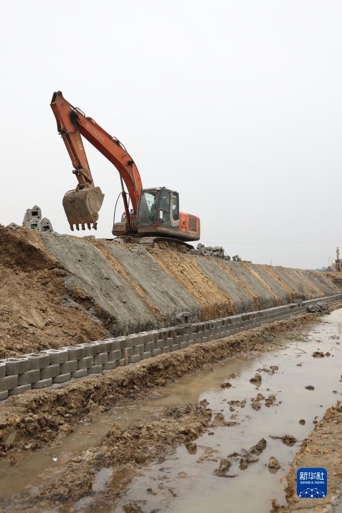 2月2日,工人在湖南省益陽(yáng)市赫山區龍光橋街道五龍壩村高標準農田建設現場(chǎng)修建排水渠。