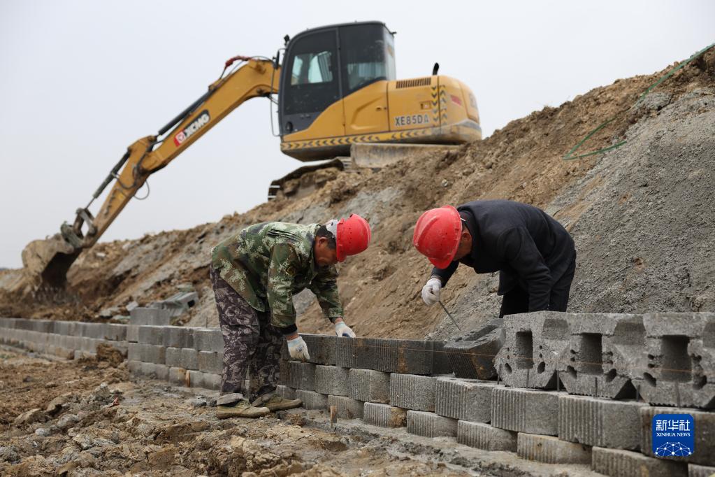 2月2日,工人在湖南省益陽(yáng)市赫山區龍光橋街道五龍壩村高標準農田建設現場(chǎng)修建排水渠。