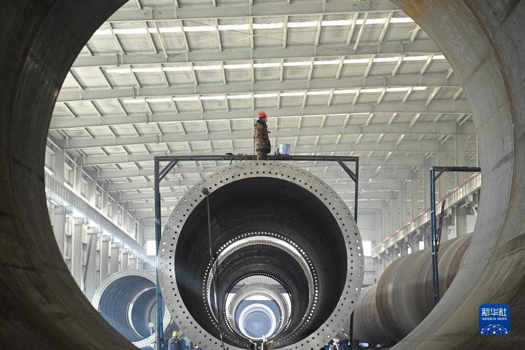 2月2日,在張掖市高臺縣的一家風(fēng)機塔筒企業(yè),工人在生產(chǎn)線(xiàn)上作業(yè)。