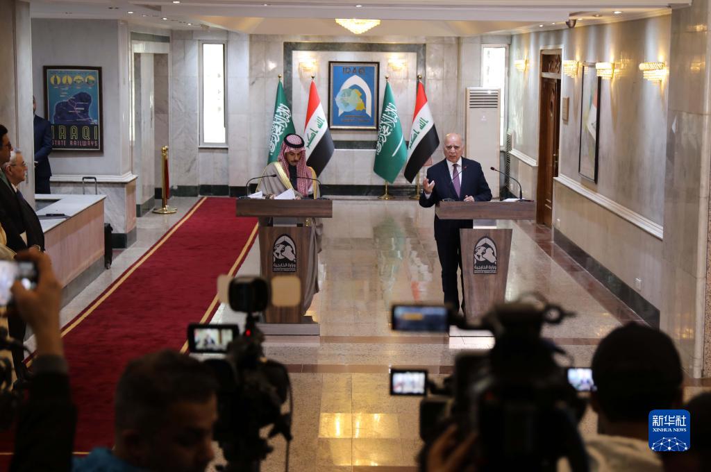 2月2日,在伊拉克首都巴格達,伊拉克外交部長(cháng)侯賽因(右)與到訪(fǎng)的沙特外交大臣費薩爾舉行聯(lián)合記者會(huì )。