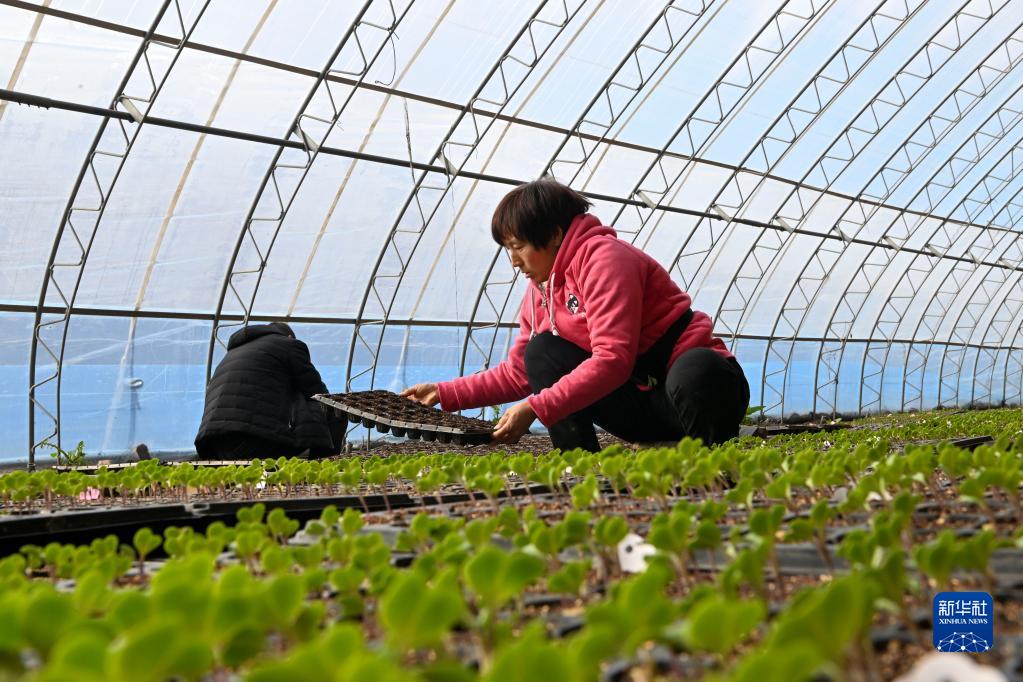 2月2日,工人在天津市農業(yè)科學(xué)院創(chuàng )新基地大棚內栽種花椰菜試驗種。